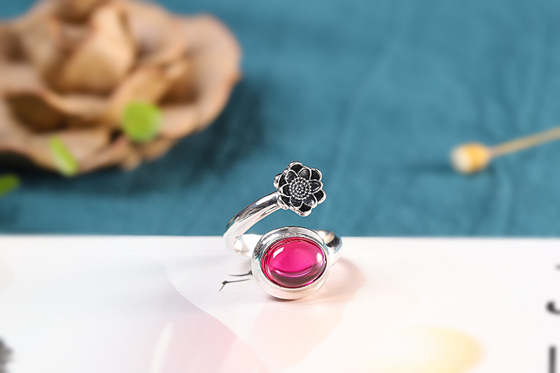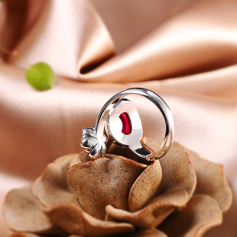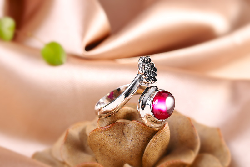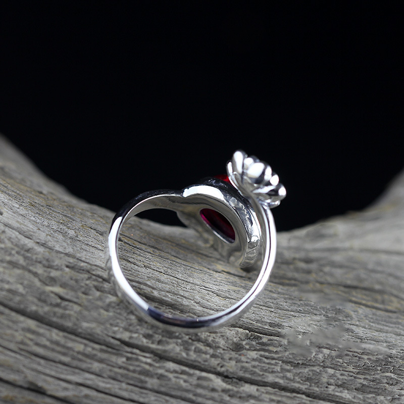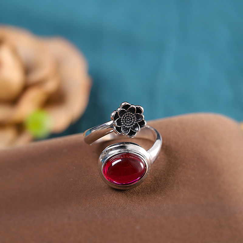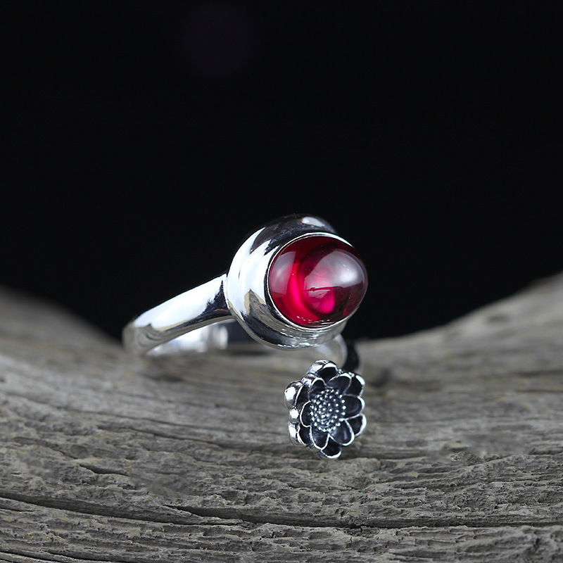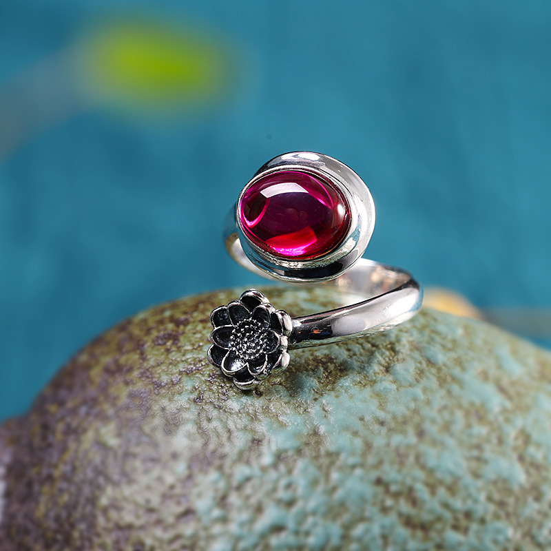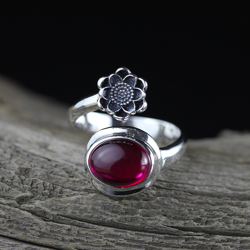 S925 Silver Jewelry Fashion Fine Craftsmanship Women’s Red Corundum Open Ring Source Factory Trendy Match