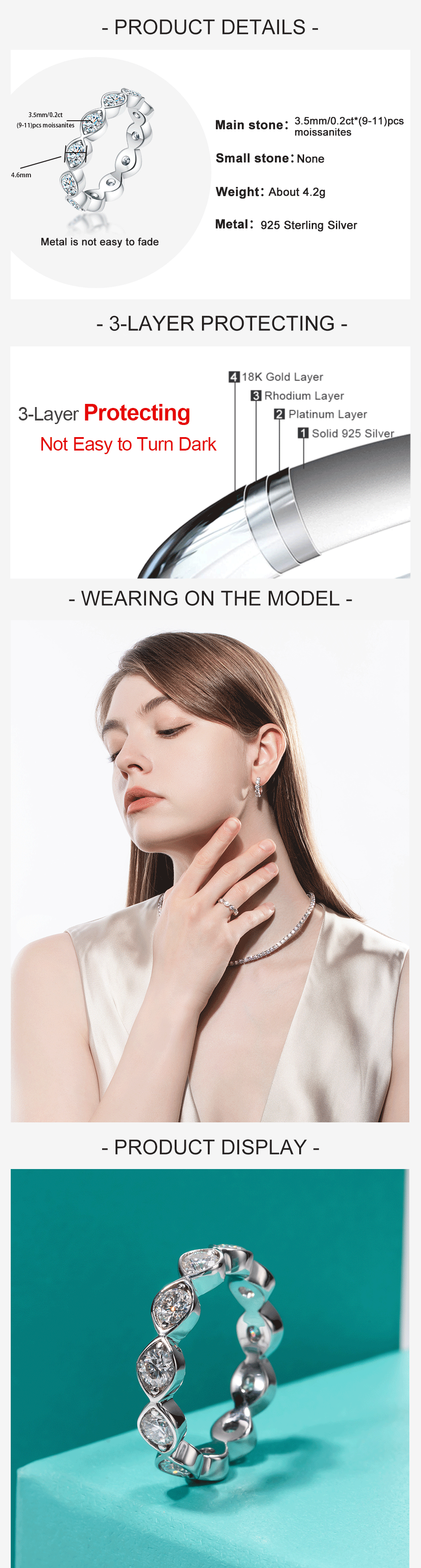 3.5mm VVS1 D Color Moissanite Diamond Eternity Wedding Band Ring 925 Sterling Silver Rings Jewelry